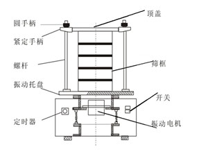 3、把被檢物料放入*上端的標(biāo)準(zhǔn)篩具里,(或蓋上標(biāo)準(zhǔn)篩具上蓋)然后用套在絲柱上的篩分頭壓住標(biāo)準(zhǔn)篩具,旋緊絲柱上的螺母來(lái)壓緊標(biāo)準(zhǔn)篩具。(注意:兩側(cè)要用力一致,然后用鎖定螺絲鎖緊。)